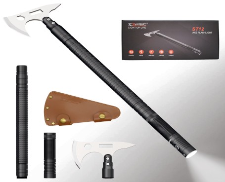 Aluminum axe with 1100 lumen tactical flashlight, it can not only be used for outdoor survival, but also can resist animal attacks or maintain vehicle lighting.